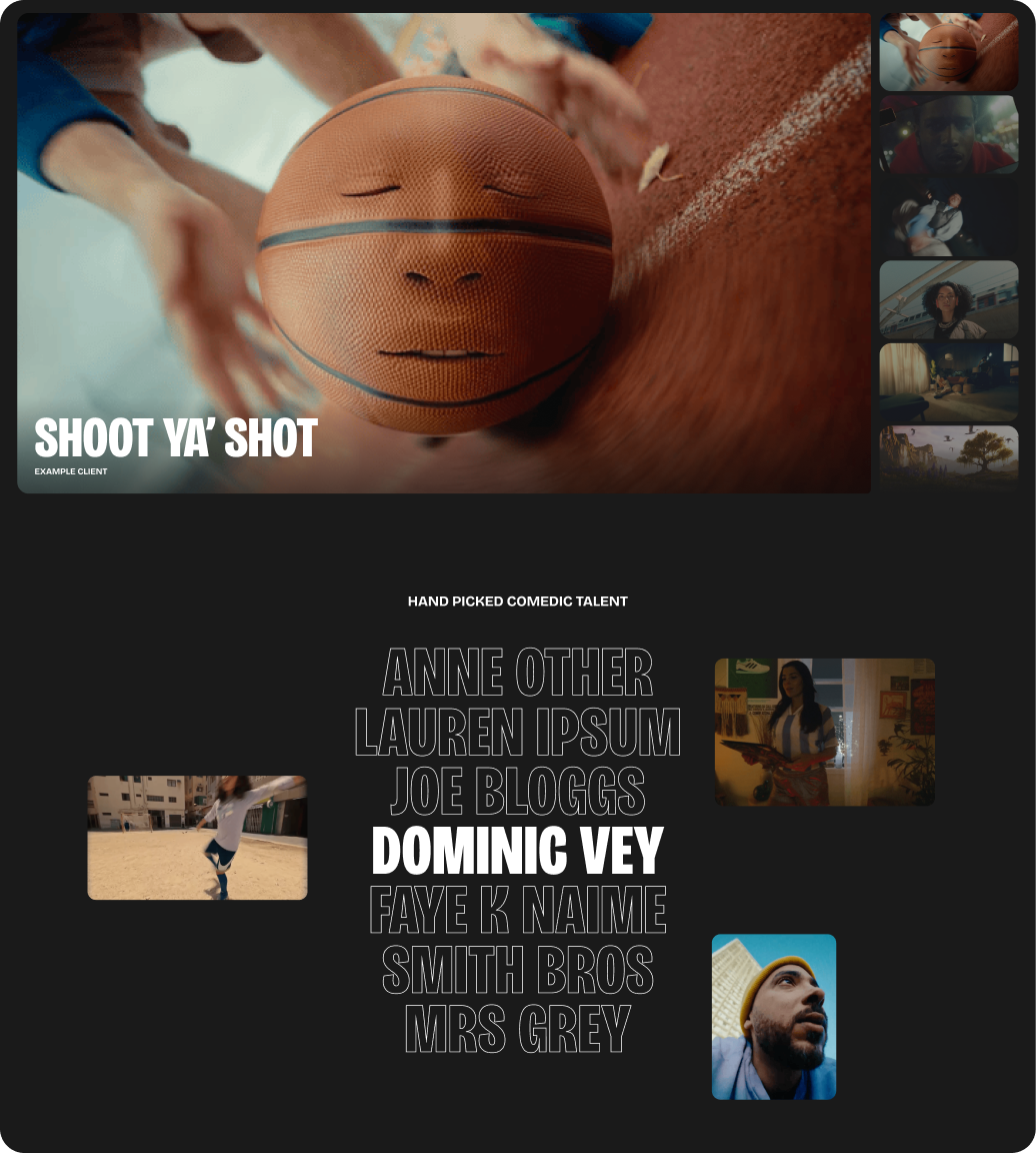 Build highly-relevant, crafted reels and talent shortlists for any brief. Fast and flexible - create and send in seconds.