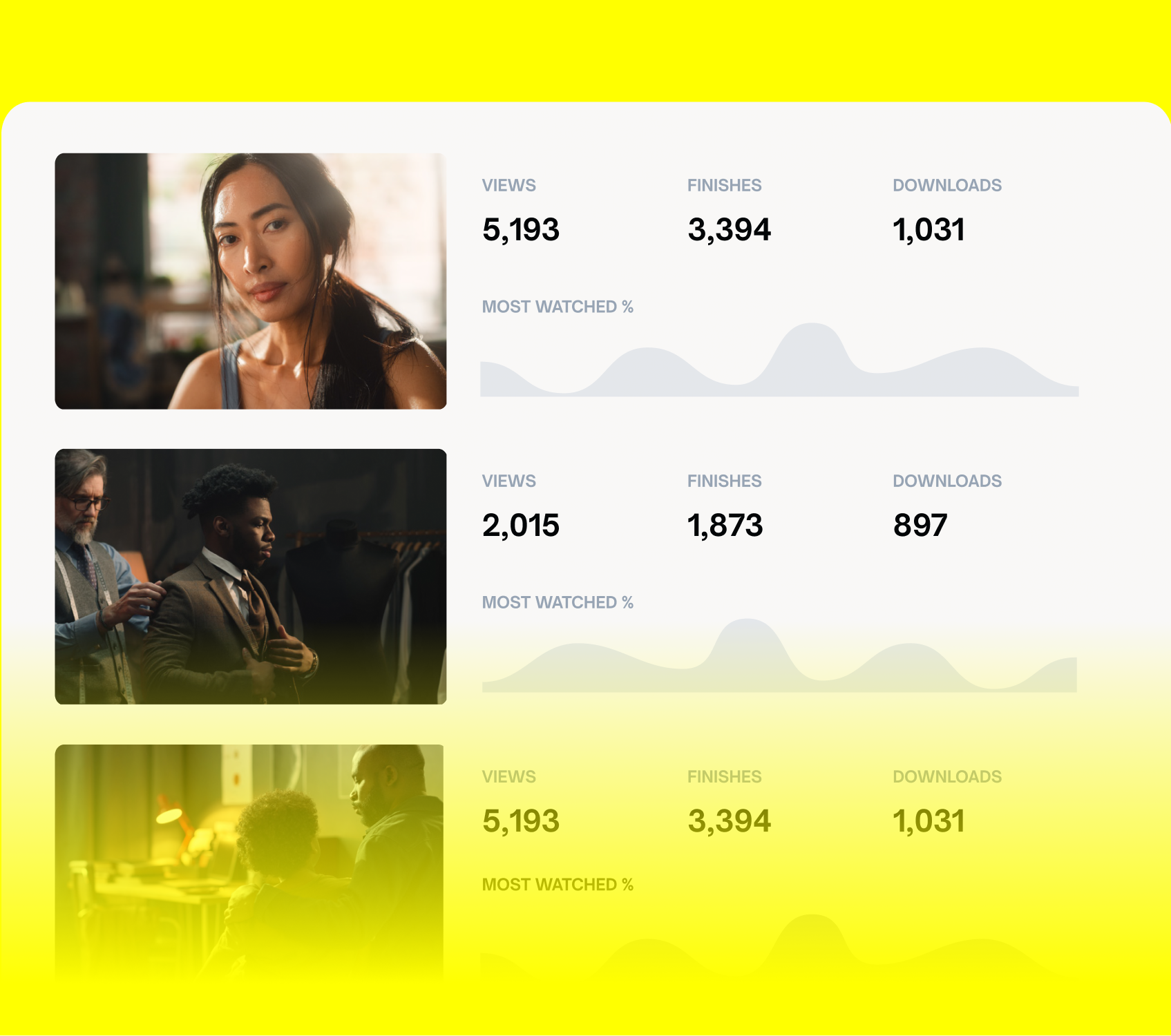 Tracks analytics in-depth - from total video views and watch time to popular pages and granular analytics of individual directors.